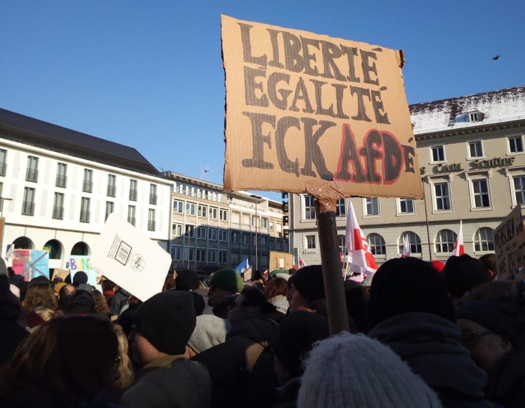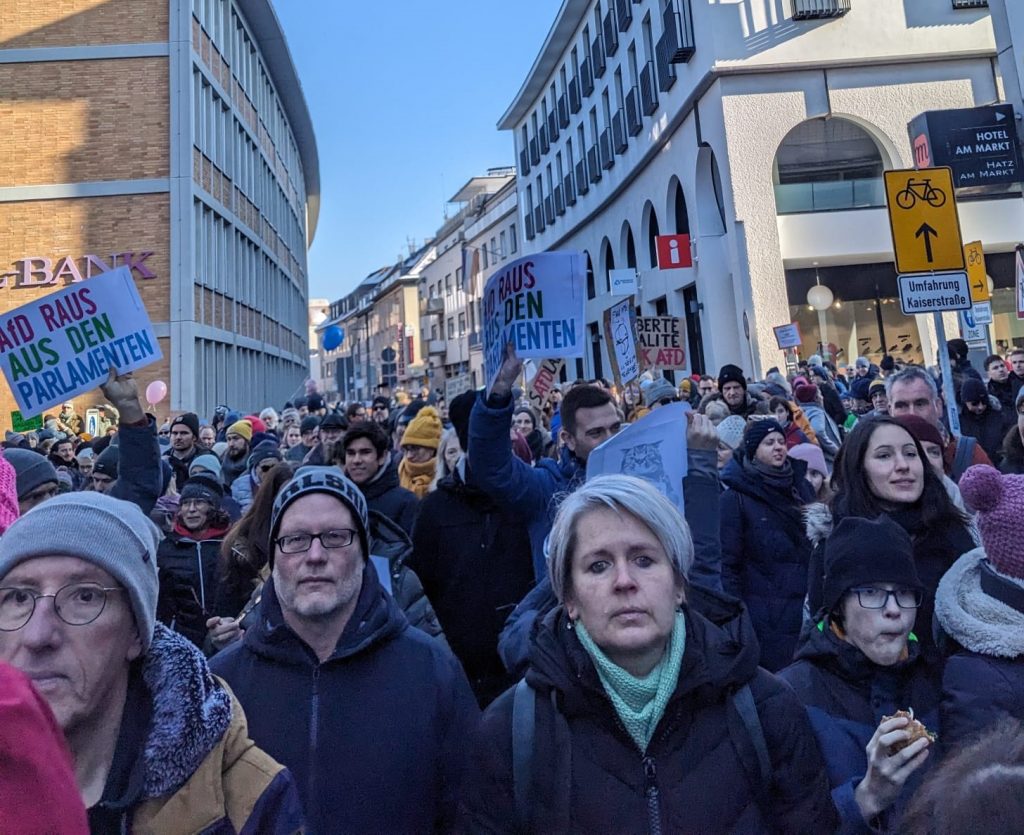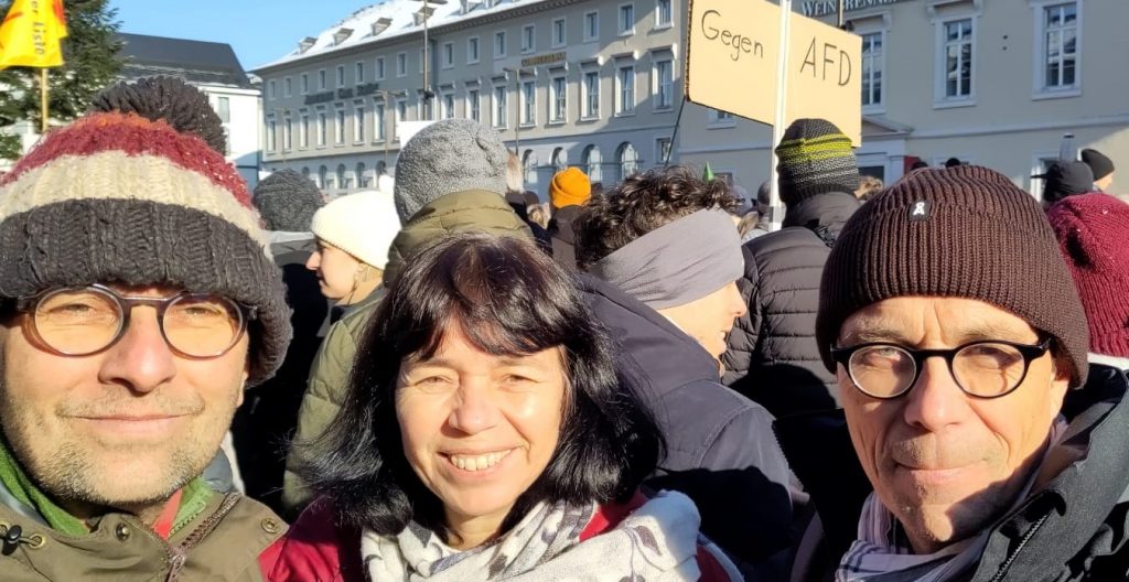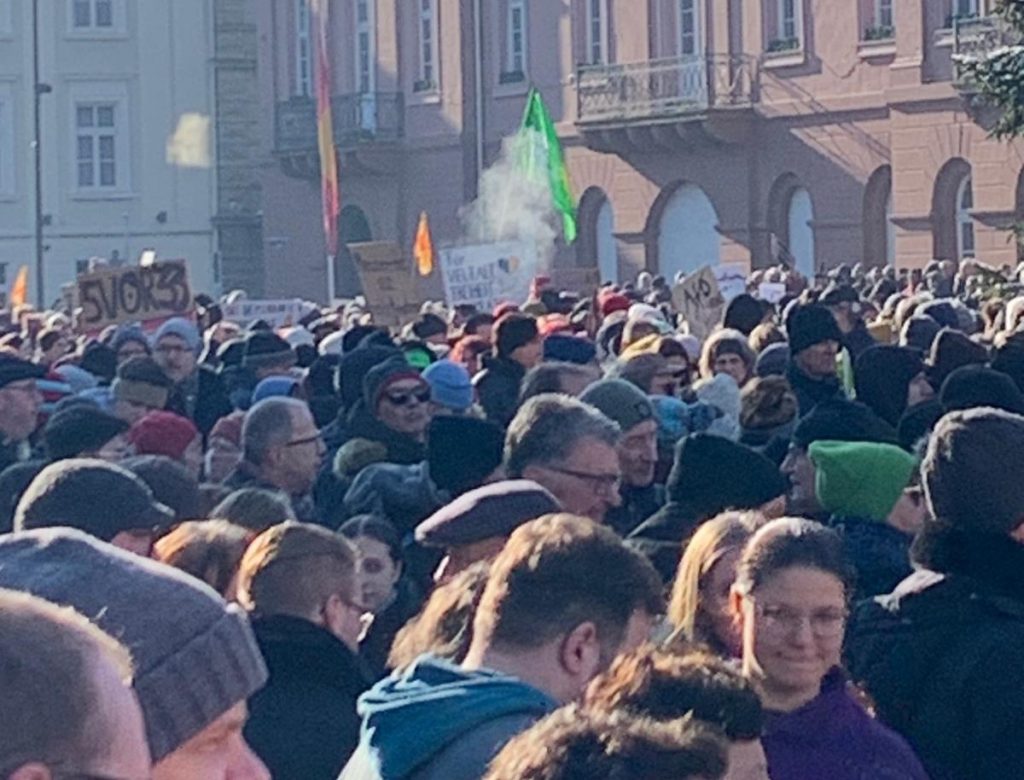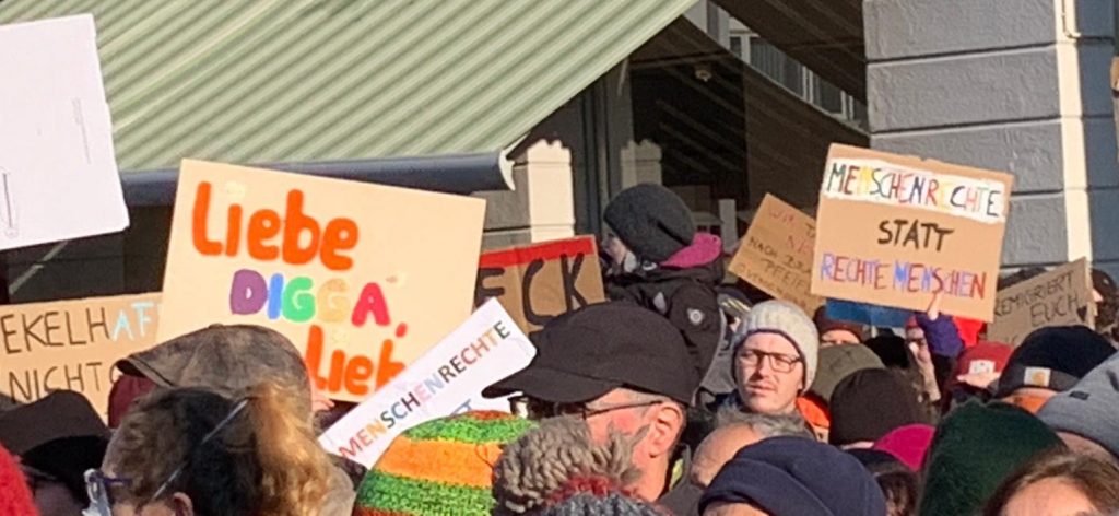 Hunderttausende Menschen gehen zurzeit für unsere Demokratie auf die Straße. Und wir Grüne in Muggensturm waren am 20.01. in Karlsruhe dabei! Wir sind überwältigt von der bunten Vielfalt der Menschenmenge, von der auf die Straße getragenen Solidarität, von dem friedlichen Protest gegen Rassismus. Wir wehren uns gegen Hass, Hetze und Gewalt.